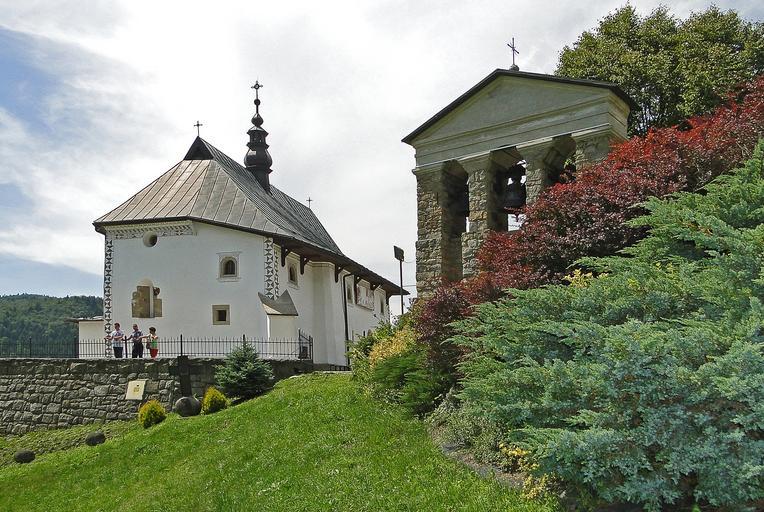 Keywords: poland malopolska town trail church church in tropiu the bell tower the bells tower faith white blue green history the year 1634 reverie meditation prayer hermitage name zorard the hermitage catholicism pilgrimage architecture village grass
