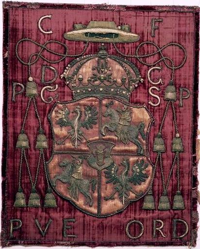 Keywords: Poland Seat upholstery.jpg Poland 1651-1655 silk gold thread velvet cm 59 47 5 Institution National Museum Warsaw Not on view accession number SZT 1920 object history credit line Carolus Ferdinandus Dei Gratia POLoniae ET Sveciae Princeps / Plocensis Vratislaviensis Episcopus / Oppoliensis Ractiboriensis Dux Adorned with a shield with arms of the Polish-Lithuanian Commonwealth the House of Vasa in the center and Charles Ferdinand's initials Robert Kirkland Monika Jurewicz-Waśniewska Joanna Śmigielska 2002 The Eagle and the Three Crowns Zamek Królewski ISBN 83-70221-25-4 cat no II 75 http //old mnw art pl/index php/zbiory/konserwacja/aktualnosci/ old mnw art pl See below PD-old-100 DEFAULTSORT 1651-1655; Seat upholstery Embroidery of Poland Textiles in the National Museum in Warsaw Polish art in the National Museum in Warsaw Textiles from the Polish Vasa Collection Charles Ferdinand Vasa Upholstered chairs Velvet Upholstery Coats of arms of the House of Vasa 17th-century embroidery Close-ups of woven textiles Ecclesiastical embroidery |
