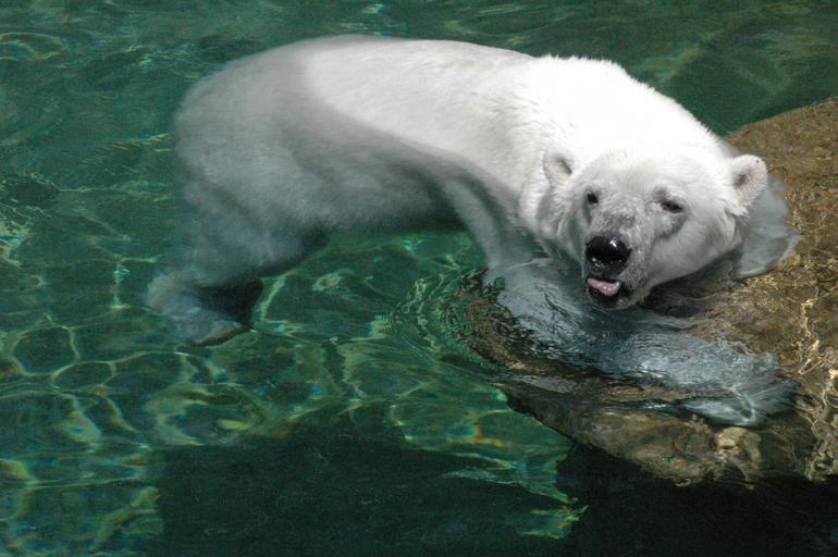 Keywords: polar bear white fur water swimming happy