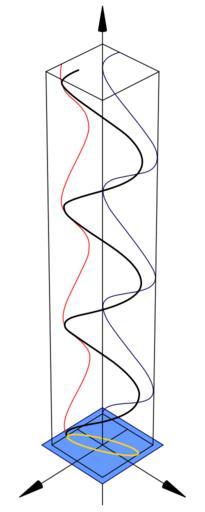 | Keywords: Polarisation (Elliptical).svg Diagram of elliptical polarisation of electromagnetic radiation Own drawing down in Mathematica edited in Inkscape Created with Inkscape 12/02/07 Inductiveload Circular polarisation Linear polarisation Mathematica Code This figure requires the use of Arrow3D which is not included in the StandardPackages as of Feb 2007 This can be obtained from Wolfram Research at http //library wolfram com/infocenter/TechNotes/4117/ this location The required packages are << Graphics` << Arrow3D`Arrow3D` The code is <pre><nowiki> wavefunction ParametricPlot3D 0 5 Sin4t+1 -Sin4t t t 0 5 BoxRatios\Rule 1 1 4 ImageSize\Rule400 Boxed\RuleFalse Axes\RuleFalse PlotPoints\Rule60 ViewPoint-> 2 2 2 PlotRange\RuleAll repsi ParametricPlot3D 0 5 Sin4t+1 -1 t RGBColor1 0 0 t 0 5 BoxRatios\Rule 4 1 1 ImageSize\Rule500 Boxed\RuleFalse Axes\RuleFalse PlotPoints\Rule60 PlotRange\RuleAll impsi ParametricPlot3D -1 -Sin4t t RGBColor0 0 102/255 t 0 5 BoxRatios\Rule 4 1 1 ImageSize\Rule500 Boxed\RuleFalse Axes\RuleFalse PlotPoints\Rule60 PlotRange\RuleAll end ParametricPlot3D 0 5 Sint+1 -Sint 0 t 0 2Ï BoxRatios\Rule 4 1 1 ImageSize\Rule500 Boxed\RuleFalse Axes\RuleFalse PlotPoints\Rule10 PlotRange\RuleAll xaxis Graphics3DArrow3D 0 0 -1 0 0 6 HeadSize \Rule UniformSize 5 HeadColor\RuleBlack uaxis Graphics3DArrow3D 0 -1 0 0 3 0 HeadSize \Rule UniformSize 5 HeadColor\RuleBlack vaxis Graphics3DArrow3D -1 0 0 3 0 0 HeadSize \Rule UniformSize 5 HeadColor\RuleBlack plane Graphics3DPolygon 1 2 1 2 0 1 2 -1 2 0 -1 2 -1 2 0 -1 2 1 2 0 \ crate WireFrameGraphics3DCuboid 1 1 0 -1 -1 5 Showwavefunction xaxis uaxis vaxis plane repsi impsi end crate </nowiki></pre> Circular and elliptical polarization SVG physics |