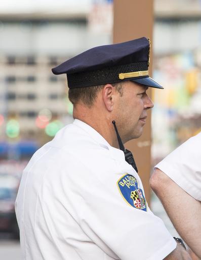 Keywords: police officer cop uniform policeman police officer security enforcement badge protection police badge male law baltimore city urban