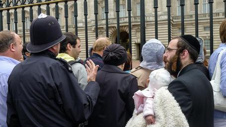 Keywords: police people tourists harmony waiting for you crowds man