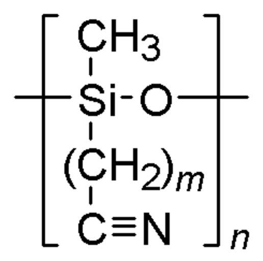 Keywords: Poly(methylcyanoalkylsiloxane).png Selfmade with ChemDraw 2006-02-24 own assumed Calvero Silicone polymers