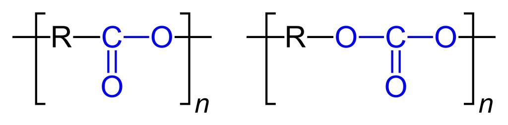 Keywords: Polyester-WE-COO-OCOO.svg de Wiederholeinheiten von Carbonaten und Carbonsäureestern own Roland chem 2014-11-05 Polyesters Cc-zero