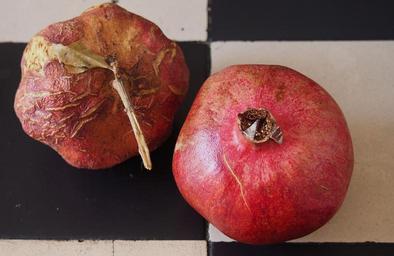 Keywords: pomegranate reverse schrumpelt frisch young old punica granatum fruit red black and white