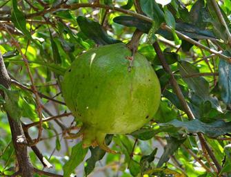 Keywords: pomegranate trees fruits greenery unripe raw leaves leafy branches stems plants flora gardens gardening outdoors foliage exotic healthy nutritious delicious foods crops plantation vegetation