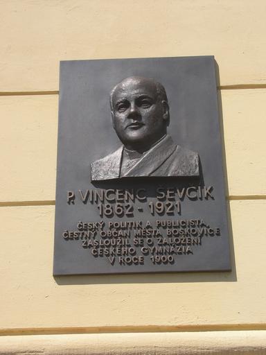 Keywords: Pomníček P. V. Ševčíkovi.JPG Pomníček P V Ševčíkovi v Boskovicích own 2007-07-15 Lukáš Malý uvolňuji dílo Plaques in Boskovice Reliefs in Blansko District