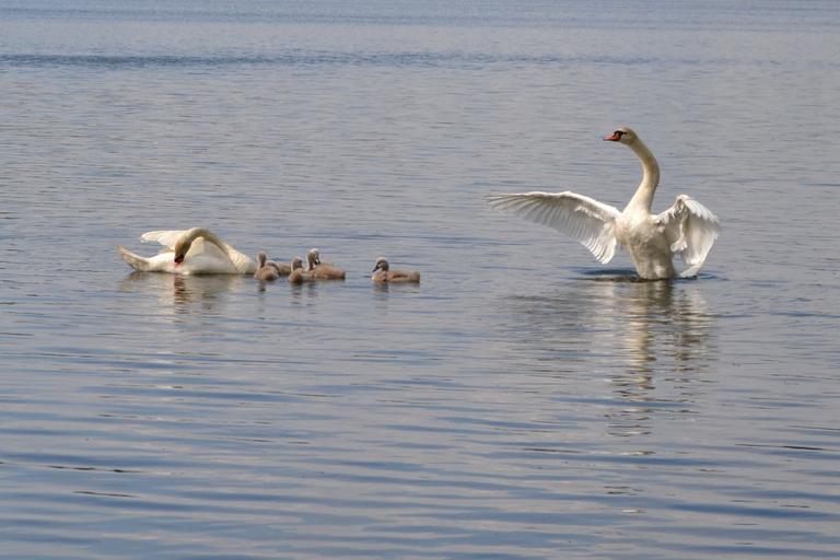 Keywords: pond swan mute swan water bird nature swans bird white chicks family white swan