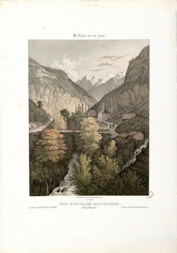 | Keywords: Pont d'Enfer, aux Eaux-Chaudes (Basses-Pyrénées) - Fonds Ancely - B315556101 A MERCEREAU 7 067.jpg Impression en 3 coul par Frick frères à Paris Fait partie d'un ensemble de recueils de lithographies de Mercereau composés de lithographies provenant de La France de nos jours vaste suite publiée par livraisons de 1853 à 1876 et comprenant 475 planches en deux tirages l'un à deux teintes noir et bistre l'autre en couleurs Les libraires ont réuni ces planches en albums de composition variable quant au nombre de planches et aux dessinateurs Asselineau Mercereau Maurice Deroy etc Un titre Les Pyrénées par Ch Mercereau; Bagnères-de-Luchon par Ch Mercereau était frappé sur le plat supérieur de la reliure de l'album ainsi que le nom du Libraire pour lequel il était réalisé La plupart des recueils de ces planches pyrénéennes portent le nom de Sajous libraire à Bagnères-de-Luchon Pl 1 à 18 numérotées de 370 à 386 Pl 374 pl 5 et 6 en double -- Pl 19 20 et 21 numérotées respectivement 407 415 et 418 Ces trois pl ont été dessinées et lithographiées par Asselineau -- Pl 22 23 et 24 numérotées 438 439 et 440 -- Pl 22 lith par Aubrun -- Pl 25 numérotée 441 -- Pl 26 à 40 numérotées de 327 à 341 -- Pl 41 à 46 numérotées de 363 à 368 -- Pl 47 numérotée 369 -- Pl 48 num 292 -- Pl 49 et 50 num 264 et 265 -- Pl 51 et 52 num 268 et 269 -- Pl 53 à 55 num de 293 à 295 -- Pl 56 num 300 -- Pl 57 à 59 num de 307 à 309 -- Pl 60 à 70 num de 316 à 326 -- Pl 71 num 63 dessin et lith d'Asselineau imprimerie Destouches -- Pl 72 et 73 num 87 et 88 dessin et lith d'Asselineau imprimerie Destouches -- Pl 74 num 124 signée Lebreton éditée chez Lalonde à Paris et imprimée chez Becquet frères à Paris -- Pl 75 num 161 dessin et litho d'Asselineau imprimerie Destouches --Pl 76 à 78 num de 207 à 209 -- Pl 79 à 81 num de 211 à 213 -- Pl 82 num 220 dessin et lith de Maurice imprimerie Destouches -- Pl 83 à 86 num de 226 à 229 -- Pl 87 et 88 num 234 et 235 -- Pl 89 à 91 num de 273 à 275 -- Pl 92 et 93 num 290 et 291 Pièces jointes 6 pl sépia dont certaines sont des doubles du recueil de Mercereau Les cinq premières planches sont numérotées respectivement 318 321 324 331 386 La dernière planche n'est pas extraite de La France de nos jours mais de L'Espagne pittoresque et monumentale Ces six planches sont signées Mercereau éditées chez Sinnet et imprimées chez Frick frères Ancely René 1876 - 1966 Possesseur fre public domain domaine public B315556101_A_MERCEREAU_7_067 jpg image/jpeg 1 f de pl lithogr ; 45 cm Frick frères Imprimeur Sinnet F Éditeur http //numerique bibliotheque toulouse fr/collect/general/index/assoc//ark /74899/B315556101_A_MERCEREAU_7_067 dir/B315556101_A_MERCEREAU_7_067 jpg Bibliothèque municipale de Toulouse A-MERCEREAU 7-67 Creator Charles Mercereau http //catalogues toulouse fr/web2/tramp2 exe/do_keyword_search/log_in setting_key BMT1 servers 1home query p001691 St Jean-de-Luz intérieur de l'Eglise St Jean-de-Luz le Château de l'Infante Biarritz Vue générale prise du Phare Château de Mauvesin près Bagnères-de-Bigorre Hautes Pyrénées Bagnères de Bigorre Hautes Pyrénées - Intérieur de l'Eglise des Carmes en couleurs Bagnères de Bigorre Hautes Pyrénées - Intérieur de l'Eglise des Carmes Bagnères-de-Bigorre - Eglise et couvent des Carmes Bagnères-de-Bigorre Hautes-Pyrénées - Tour des Jacobins Cascade et Pont de Magenta Vallée de l'Esponne Hautes Pyrénées Cascade de Trémes-Aïgues Vallée de Grip Hautes Pyrénées St Sauveur Hautes Pyrénées - Le Pont Napoléon Bayonne - Eglise St André Arreau et la Vallée d'Aure Hautes Pyrénées - Vue prise au dessus de la route du Col d'Aspin Auch - Vue prise sur les bords du Gers Auch - Vue de la Cathédrale Auch - Intérieur de la Cathédrale Bagnères-de-Bigorre - Vue Générale prise de la Fontaine ferrugineuse Eaux-Bonnes Basses-Pyrénées - L'établissement Thermal et la Chapelle Nantes - Vue de l'Eglise Ste Croix Le Croisic - Plage des Baigneurs et Etablissement de Bains Le Folgoët - Vue de l'Eglise Brèche de Roland prise de Gèdres Hautes Pyrénées Eglise des Templiers à Luz Chapelle du couvent de Pouëlahun i e Pouey Lahun - Vallée d'Azun Hautes Pyrénées Le Pont de Scia - Route de Luz à Gavarnie Hautes-Pyrénées Vue de l'établissement de la Raillière près Cauterets Hautes-Pyrénées Vue générale de Cauterets prise du Mamelon Vert Hautes-Pyrénées Vue du Fort de Lourdes Hautes-Pyrénées Vue d'Argelès-de-Bigorre Hautes-Pyrénées Vue de St Sauveur Hautes-Pyrénées Le Pas de l'Echelle Route de Gavarnie Hautes-Pyrénées Fond de la Vallée d'Argelès prise de la terrasse de St Savin Hautes-Pyrénées Place Grammont à Pau Basses-Pyrénées Vue générale des Eaux-Bonnes Basses-Pyrénées Barèges et la Vallée du Bastan Hautes-Pyrénées Chute supérieure du Pont d'Espagne Hautes-Pyrénées La grotte miraculeuse à Lourdes Hautes-Pyrénées Eglise de Bétharram et Pont de Lestelle Basses Pyrénées Cascade du Cerizet Près Cauterets Hautes-Pyrénées Pic du Midi d'Ossau 2885m Basses Pyrénées - Vue prise du 3e plateau de Bious-Artigues Toulouse - Cloître du Musée et Clocher des Augustins Pau - Vue prise de la terrasse du Château Pau - Vue du Château prise du Parc Toulouse - Cloître du Musée Galerie du Moyen-Age Toulouse - La maison de pierre fragment de la façade Toulouse - Intérieur de St Sernin St Jean-de-Luz Fort du Socoa Toulouse - Vue du Capitole Bordeaux Vue de la Porte du Caillau i e Cailhau Bordeaux Porte de la grosse Cloche Bordeaux Vue des Quinconces Bordeaux - Vue de la Tour et de l'Eglise de St Michel Toulouse - Vue du Pont de pierre prise du Quai de Brienne Toulouse - Abside de l'Eglise de St Sernin de l'an 1097 Toulouse - Choeur de la Cathédrale St Etienne Rouen - Hôtel de Bourgtheroulde Biarritz - Vue des Bains Napoléon et du Casino Biarritz - Vue des Bains du Port Vieux Biarritz - Vue de l'Entrée de la Ville à 