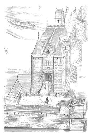Keywords: Pont.Orleans.png Un second pont-levis était pratiqué en avant de la porte H de la ville Une vue perspective à vol d'oiseau fig 9 présente l'entrée du pont d'Orléans avec son boulevard sur la rive gauche du côté de la Sologne après les réparations faites depuis le siége de 1428 Plus tard en 1591 et 1592 on reconstruisit ce boulevard A avec casemates en forme de ravelin à doubles tenailles ainsi que des fouilles récentes l'ont fait reconnaître Mais alors la porte des Tourelles existait encore Viollet-le-Duc Bridges Viollet-le-Duc Ravelins Drawbridges in France Drawings of defensive walls Bridges in Orléans |