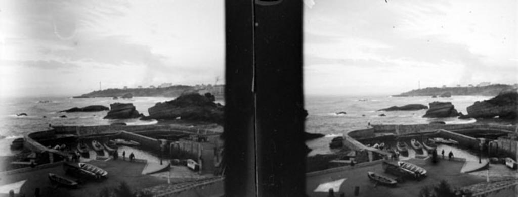 | Keywords: bibliothèque de toulouse bibliothèquedetoulouse boats coastline harbor pier blackandwhite monochrome black and white Fonds Trutat - Photographie ancienne Cote : TRU C 583 Localisation : Fonds ancien (S 30) Original non communicable Titre : Pont vieux, Biarritz, 1908 Auteur : Trutat, Eugène Rôle de l’auteur : Photographe Lieu de création : Biarritz (Pyrénées-Atlantiques) Date de création : 1908 Mesures : : 5 x 11 cm Mot(s)-clé(s) : -- Océan -- Homme -- Bâtiment -- Bord de mer -- Rive -- Phare -- Port -- Pont -- Rocher -- Bateau -- Pêcheur -- Biarritz (Pyrénées-Atlantiques) -- Biarritz (Pyrénées-Atlantiques ; canton) -- Pyrénées-Atlantiques (Aquitaine) -- Aquitaine (France) -- Atlantique (océan) -- Pays Basque (France) -- Pyrénées (France) -- 20e siècle, 1e quart Médium : Photographies -- Négatifs sur plaque de verre -- Stéréogrammes -- Noir et blanc -- Paysages Bibliothèque de Toulouse. Domaine public Fonds Trutat - Photographie ancienne Cote : TRU C 583 Localisation : Fonds ancien (S 30) Original non communicable Titre : Pont vieux, Biarritz, 1908 Auteur : Trutat, Eugène Rôle de l’auteur : Photographe Lieu de création : Biarritz (Pyrénées-Atlantiques) Date de création : 1908 Mesures : : 5 x 11 cm Mot(s)-clé(s) : -- Océan -- Homme -- Bâtiment -- Bord de mer -- Rive -- Phare -- Port -- Pont -- Rocher -- Bateau -- Pêcheur -- Biarritz (Pyrénées-Atlantiques) -- Biarritz (Pyrénées-Atlantiques ; canton) -- Pyrénées-Atlantiques (Aquitaine) -- Aquitaine (France) -- Atlantique (océan) -- Pays Basque (France) -- Pyrénées (France) -- 20e siècle, 1e quart Médium : Photographies -- Négatifs sur plaque de verre -- Stéréogrammes -- Noir et blanc -- Paysages Bibliothèque de Toulouse. Domaine public |