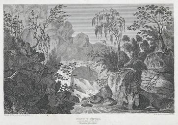Keywords: Pont y Prydd, or the New Bridge over the Taafe, Glamorganshire.jpeg Abstract A view of Pont y Pridd with a fast flowing river underneath Trees and rocks surround the bridge Size mm 130 159 exhibition history Institution National Library of Wales Technique print engraving bw object history object type PD-old-100-1923 place of creation place of discovery 1128983 Pont y Prydd or the New Bridge over the Taafe Glamorganshire Uploaded with GWToolset Pont y Prydd or the New Bridge over the Taafe Glamorganshire http //dams llgc org uk/behaviour/llgc-id 1128983/fedora-bdef image/reference Images uploaded as part of NLW - WMUK collaboration Welsh Landscape Collection Old Bridge Pontypridd 1810s Rocks Rivers of Wales Cliffs Trees Bridges in Wales Bridges in art