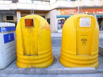 Keywords: Pontevedra - reciclaje de residuos urbanos 1.jpg es Pontevedra 2016-08-23 own Zarateman other versions cc-zero Recycling in Pontevedra Plastic salvage containers in Spain Sorted waste containers in Galicia Spain