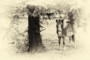 Keywords: pony horse black and white retro look wet plate