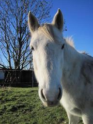 Keywords: pony mold white coupling curious attention horse head portrait horse sweet face pasture