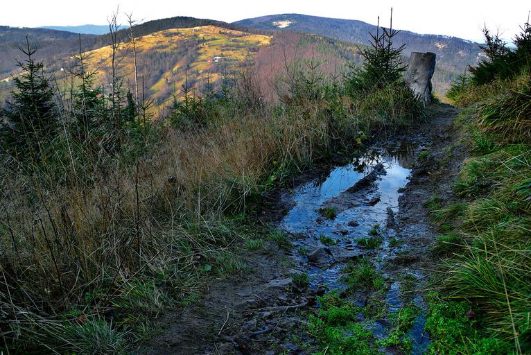 Keywords: pool mud mountains trail landscape hiking trail view beskids tourism rambles mountain