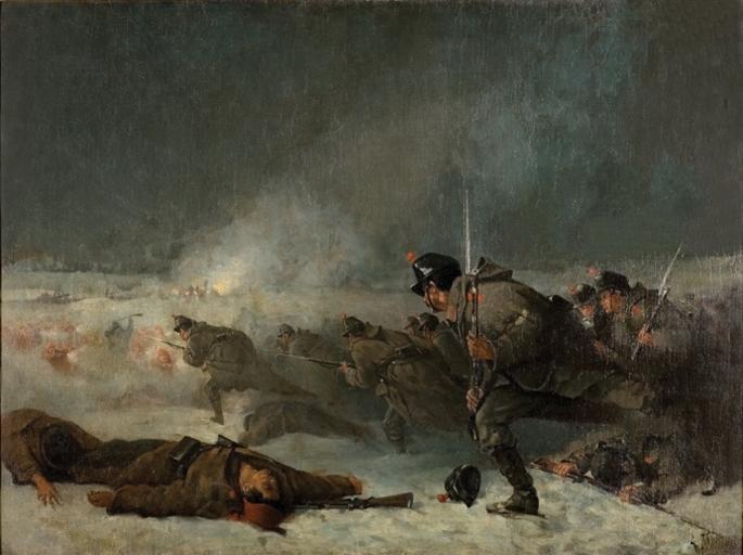 | Keywords: PopovAN 003.jpg Artwork Creator Alexey Popov en Russian infantry attack Episode of the Russian-Turkish war of 1877-1878 s 1900 Oil on canvas cm 95 4 127 4 Private collection object history credit line accession number http //www kabinet-auktion com/auction/art14/10/ PD-old-70 Alexey Popov Russo-Turkish War 1877 “1878 |