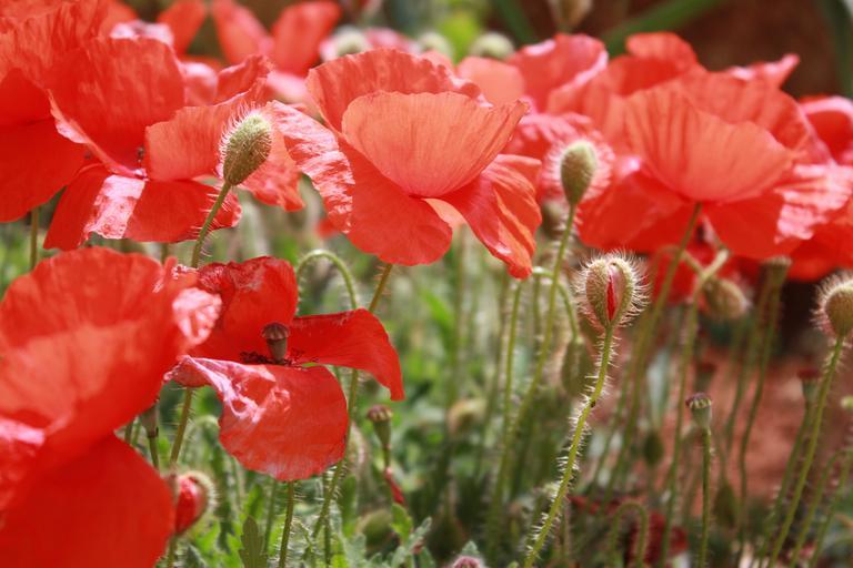 Keywords: poppies flower campaign summer red bloom vegetation spontaneous wild meadows bud