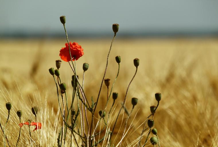 Keywords: poppy nature blossom bloom field wildflowers flower mohngewaechs red spring flowers flora bud macro plant summer cornfield cereals wheat spike spike grain fields poppy flower poppy capsules sky