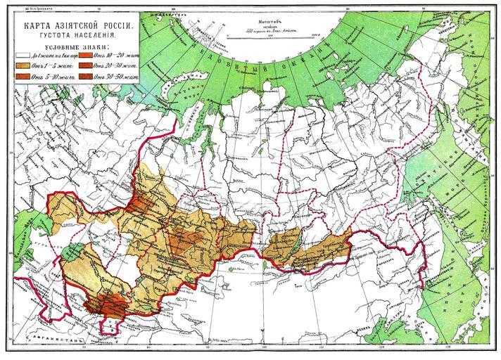 | Keywords: Population density of Russian Empire (Asian side).jpg en Population density of Russian Empire Asian side The end of XIX century ru Плотность населения Российской импе ии Азиатская часть Конец XIX века Энциклопедический слова ь Б окгауза и Еф она не указан 1893 PD-old Maps from Brockhaus and Efron Encyclopedic Dictionary |