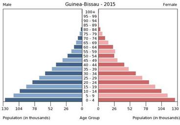 | Keywords: Population pyramid of Guinea-Bissau 2015.png en A population pyramid illustrates the age and sex structure of population and may provide insights about political and social stability as well as economic development The population is distributed along the horizontal axis with males shown on the left and females on the right The male and female populations are broken down into 5-year age groups represented as horizontal bars along the vertical axis with the youngest age groups at the bottom and the oldest at the top The shape of the population pyramid gradually evolves over time based on fertility mortality and international migration trends Віково-статева пі аміда населення Гвінеї-Бісау за 2015 ік Вона дає наочне уявлення п о вікову і статеву ст укту а населення к аїни може слугувати дже елом інфо мації п о політичну і соціальну стабільність економічний озвиток Блакитними кольо ами ліво уч у вигляді го изонтальних смуг показані вікові г упи по 5 оків кожна чоловічої статі п аво уч ожевими жіночої аймолодші вікові г упи внизу найста іші вго і Фо ма пі аміди поступово еволюціонує з плином часу під впливом чинників на оджуваності сме тності і світової міг ації https //www cia gov/library/publications/the-world-factbook/ The World Factbook 2016-09-21 The Central Intelligence Agency Цент альне озвідувальне уп авління PD-USGov Population pyramids of Guinea-Bissau |