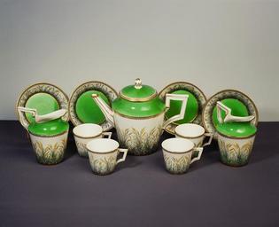 | Keywords: Porslin - Hallwylska museet - 13811.tif Servis bestående av tekanna två gräddkannor åtta koppar och åtta fat Dekor i naturliga färger i form av blommor och växande sädesstånd på glasyren s k fleur en terrasse -dekor Mått Tekanna H 17 5 utan lock H 13 9 D 12 3 Lock H 4 8 D 8 6 Gräddkannor H 12 D 8 9 Koppar H 6 1 D 6 9 Fat H 3 D 13 1 Fabriken grundlagd år 1752 av Wilhelm Caspar Wegely som av ekonomiska skäl tvingades stänga 1757 Fabriken öppnades ånyo 1761 av köpmannen Johann Ernst Gotzkowsky med Friedrich Elias Meyer som modellmästare 1763 övertogs fabriken av Fredrik den Store och fick namnet Königliche Porzellan Manufactur Se Uhses reseant kring 6 dec 1891 original caption Porslin end other date century 18 HWY place of origin Berlin DE original filename hm_t010878 17725 inventory number HWY XLVII XII C a f 01 13811 CC-BY-SA Samuel Uhrdin Samuel Uhrdin Porcelain in the Hallwyl museum Media contributed by LSH 2013-10 |