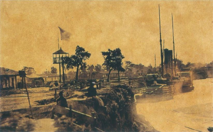 | Keywords: Port of Humaita 01.jpg en Photography of the port of Humaitá fortress after the allied captured it in July 1868 Notice the waving flag of the Empire of Brazil Albumen print Humaitá Guaranà Humaita die kleine Hafenstadt am Rio Paraguay etwa 24 km nördlich vom Zusammenfluss mit dem RÃo Paraná Hier fand 1868 eine fast dreijährigen Schlacht der Tripel-Allianz-Krieges gegen Präsident Francisco Solano López Carrillo 1827-1870 statt Die Belagerung der Stadt und ihrer Festung führte zu einigen der blutigsten Schlachten Lateinamerikas und wurde seinerzeit mit der Belagerung von Sewastopol verglichen Im Hintergrund sieht man ein siegreiches brasilianisches Kriegsschiffes um 1868 nebst aufgezogener Flagge des Kaiserreichs Brasilien Die Reste der zerstörten Kirche von Humaitá Paraguay wurde später unter dem Diktator Alfredo Stroessner der 1954 “1989 das Land beherrschte zum Denkmal der Defensa de la Patria Verteidigung der Heimat von Paraguay Auch wurde in Rio de Janairo ein Stadtteil nach diesem Siegesort Humaitá benannt 1868 Carvalho Luiz Paulo Macedo O exército na história do Brasil v 2 Rio de Janeiro Biblioteca do Exército 1998 ISBN 85-7011-209-2 p 185 Unknown 18 “18 PD-old-100 Uploaded with UploadWizard Paraguayan War photography Paraguay |
