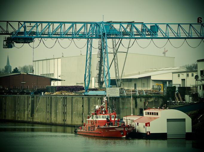 Keywords: port inland port crane water cargo harbour cranes loading crane shipping inland waterway transport düsseldorf industry marketing hub transport of goods ship rhine