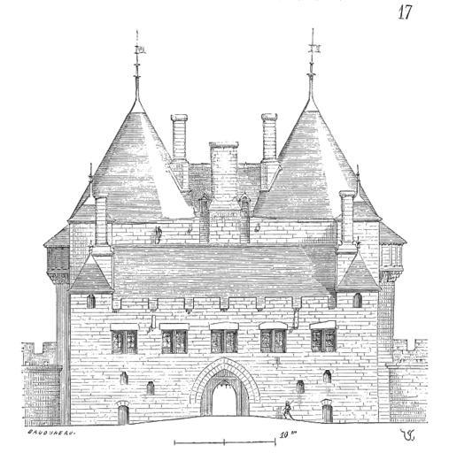 | Keywords: Porte.Laon.Coucy.png Une dernière figure complétera cet ensemble sur lequel on pourrait publier un volume c'est l'élévation de la face intérieure de la porte du côté de la ville fig 17 L'arcade large à doubles claveaux qui donne entrée dans le passage est d'un effet grandiose La grande salle du premier étage est bien accusée par ces cinq fenêtres carrées à meneaux et les deux échauguettes d'angle épaulent de la façon la plus heureuse cette structure si simple Viollet-le-Duc Portals Viollet-le-Duc Castle Viollet-le-Duc Château de Coucy |