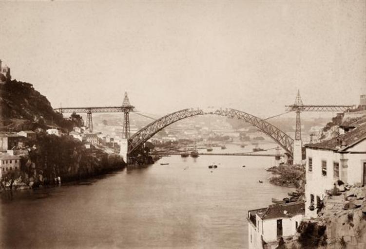 Keywords: Porto. Ponte D. Luís. Tabuleiro central em construção.jpg Photograph en Porto Dom Luis bridge Central arch under construction depicted place Ponte Luís I Porto between 1881 1886 Technique albumen print cream-colored cardboard Size cm 50 40 Institution Palácio Nacional da Ajuda object history exhibition history credit line accession number http //www matrizpix dgpc pt/MatrizPix/Fotografias/FotografiasFiltrar aspx Matrizpiz Reproduction 37397 TC Object RF 64151 cx 62 Instituto dos Museus e da Conservação http //www matrizpix dgpc pt/MatrizPix/Fotografias/FotografiasConsultar aspx TIPOPESQ 4 NUMPAG 1 REGPAG 50 CRITERIO TERMOS NUMINVOBJ F+64151+cx +62 IDFOTO 81069 Info Pic PD-old-auto 1915 Images from the Instituto dos Museus e da Conservação Emílio Biel Dom Luis I bridge from east Porto in the 19th century Ponte pênsil D Maria II Dom Luis I bridge under construction Files uploaded by User JotaCartas Historical images of bridges in Portugal |