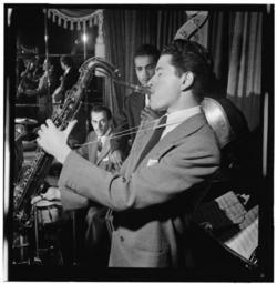 | Keywords: (Portrait of Allen Eager, Art Mardigan, and Curley Russell, Club 18, New York, N.Y., ca. Nov. 1947) (LOC) (4843125947).jpg Gottlieb William P 1917- photographer Portrait of Allen Eager Art Mardigan and Curley Russell Club 18 New York N Y ca Nov 1947 1 negative b w ; 2 1/4 x 2 1/4 in Caption from Down Beat One of the last groups officially at the Club 18 was Allan Eager's unit Here is a Got photo of Eager tenor and Arv sic Mardigan on drums The 52nd Street spot has completed a full circle After first closing as the Club 18 it became Dixon's which upon closing became the Troubadour which became Club 18 and closed again Notes Gottlieb Collection Assignment No 116 Reference print available in Music Division Library of Congress Purchase William P Gottlieb Forms part of William P Gottlieb Collection Library of Congress In Street jumps with Eager Down Beat v 14 no 23 Nov 5 1947 p 3 Subjects Eager Allen Mardigan Art Russell Curley Jazz musicians--1940-1950 Saxophonists--1940-1950 Double bassists--1940-1950 Drummers Musicians --1940-1950 Club 18 Format Portrait photographs--1940-1950 Cityscape photographs--1940-1950 Film negatives--1940-1950 Rights Info Mr Gottlieb has dedicated these works to the public domain but rights of privacy and publicity may apply http //lcweb2 loc gov/diglib/ihas/html/gottlieb/gottlieb-copyright html lcweb2 loc gov/diglib/ihas/html/gottlieb/gottlieb-copyrig Repository negative Library of Congress Prints Photographs Division Washington D C 20540 USA http //hdl loc gov/loc pnp/pp print hdl loc gov/loc pnp/pp print reference print Library of Congress Music Division Washington D C 20540 USA http //loc gov/rr/perform/ loc gov/rr/perform/ Part Of William P Gottlieb Collection DLC 99-401005 General information about the Gottlieb Collection is available at http //lcweb2 loc gov/diglib/ihas/html/gottlieb/gottlieb-home html lcweb2 loc gov/diglib/ihas/html/gottlieb/gottlieb-home html Persistent URL http //hdl loc gov/loc music/gottlieb 02161 hdl loc gov/loc music/gottlieb 02161 Call Number LC-GLB23- 0216<br/> PD-Gottlieb https //www flickr com/photos/library_of_congress/4843125947/ Portrait of Allen Eager Art Mardigan and Curley Russell Club 18 New York N Y ca Nov 1947 LOC https //www flickr com/people/8623220 N02 The Library of Congress http //www loc gov/rr/print/195_copr html noknown The Library of Congress Flickr Commons Flickr-no known copyright restrictions The Library of Congress https //flickr com/photos/8623220 N02/4843125947 2015-09-01 22 51 05 pd Photographs by William P Gottlieb Curley Russell Allen Eager |