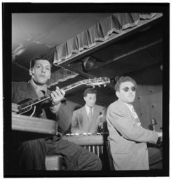 | Keywords: (Portrait of Bill (Buddy) De Arango, Terry Gibbs, and Harry Biss, Three Deuces, New York, N.Y., ca. June 1947) (LOC) (4931769035).jpg Gottlieb William P 1917- photographer Portrait of Bill Buddy De Arango Terry Gibbs and Harry Biss Three Deuces New York N Y ca June 1947 1 negative b w ; 2 1/4 x 2 1/4 in Notes Gottlieb Collection Assignment No 105 Reference print available in Music Division Library of Congress Purchase William P Gottlieb Forms part of William P Gottlieb Collection Library of Congress Subjects De Arango Bill Buddy Gibbs Terry 1924- Biss Harry Jazz musicians--1940-1950 Guitarists--1940-1950 Percussionists--1940-1950 Pianists--1940-1950 Fifty-second Street New York N Y --1940-1950 Three Deuces Format Portrait photographs--1940-1950 Group portraits--1940-1950 Film negatives--1940-1950 Rights Info Mr Gottlieb has dedicated these works to the public domain but rights of privacy and publicity may apply http //lcweb2 loc gov/diglib/ihas/html/gottlieb/gottlieb-copyright html lcweb2 loc gov/diglib/ihas/html/gottlieb/gottlieb-copyrig Repository negative Library of Congress Prints Photographs Division Washington D C 20540 USA http //hdl loc gov/loc pnp/pp print hdl loc gov/loc pnp/pp print reference print Library of Congress Music Division Washington D C 20540 USA http //loc gov/rr/perform/ loc gov/rr/perform/ Part Of William P Gottlieb Collection DLC 99-401005 General information about the Gottlieb Collection is available at http //lcweb2 loc gov/diglib/ihas/html/gottlieb/gottlieb-home html lcweb2 loc gov/diglib/ihas/html/gottlieb/gottlieb-home html Persistent URL http //hdl loc gov/loc music/gottlieb 01921 hdl loc gov/loc music/gottlieb 01921 Call Number LC-GLB23- 0192<br/> PD-Gottlieb https //www flickr com/photos/library_of_congress/4931769035/ Portrait of Bill Buddy De Arango Terry Gibbs and Harry Biss Three Deuces New York N Y ca June 1947 LOC https //www flickr com/people/8623220 N02 The Library of Congress http //www loc gov/rr/print/195_copr html noknown The Library of Congress Flickr Commons Flickr-no known copyright restrictions The Library of Congress https //flickr com/photos/8623220 N02/4931769035 2015-09-01 22 58 33 pd Photographs by William P Gottlieb |