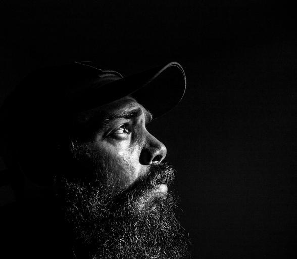 Keywords: portrait black white face model male black and white background gritty grunge adult guy male model expression american beard head shot solitude alone