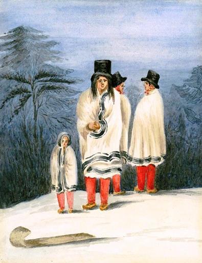 | Keywords: Portrait of Canadian Indians, three adults and a child by Philip J. Bainbrigge.jpg en Portrait of Canadian Indians three adults and a child by Philip J Bainbrigge watercolour; 12 7 x 10 2 cm <br> Item consists of a watercolour drawing of three adults and a child all wrapped in blankets standing beside a snow sled 1840 http //collectionscanada gc ca/pam_archives/index php fuseaction genitem displayItem lang eng rec_nbr 3664120 rec_nbr_list 3664151 3664130 3664120 3664077 4128893 17697 22984 3568743 4169989 4170346 collectionscanada gc ca Philip John Bainbridge other versions PD-100 Native Americans in art Toboggans 1840 in Canada Philip John Bainbridge Uploaded with UploadWizard |