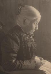 Keywords: portraits women monochrome Photographer: Reuben R. Sallows (1855 - 1937) Description: Studio portrait of elderly woman seated in profile; grey hair; shown with cloth in lap; dark dress, dark lace inlaid at neck, small light ruffle around neck; Sallows imprint across bottom of matte; writing on back Old Aunt Charlotte Sallows Green, wife of William Green, lived to be 99 years old, they celebrated 75th wedding anniversary Object ID : 0376-rrs-ogohc-ph View additional photographs by Sallows that are held in other collections at the Reuben R. Sallows Digital Library. Order a higher-quality version of this item by contacting the Huron County Museum (fee applies). Photographer: Reuben R. Sallows (1855 - 1937) Description: Studio portrait of elderly woman seated in profile; grey hair; shown with cloth in lap; dark dress, dark lace inlaid at neck, small light ruffle around neck; Sallows imprint across bottom of matte; writing on back Old Aunt Charlotte Sallows Green, wife of William Green, lived to be 99 years old, they celebrated 75th wedding anniversary Object ID : 0376-rrs-ogohc-ph View additional photographs by Sallows that are held in other collections at the Reuben R. Sallows Digital Library. Order a higher-quality version of this item by contacting the Huron County Museum (fee applies). |
