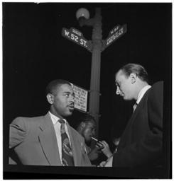| Keywords: (Portrait of Dizzy Gillespie, 52nd Street, New York, N.Y., between 1946 and 1948) (LOC) (5306972164).jpg  Gottlieb William P 1917- photographer Portrait of Dizzy Gillespie 52nd Street New York N Y between 1946 and 1948 1 negative b w ; 2 1/4 x 2 1/4 in Notes Gottlieb Collection Assignment No 523 Purchase William P Gottlieb Forms part of William P Gottlieb Collection Library of Congress Subjects Gillespie Dizzy 1917- Jazz musicians--1940-1950 Trumpet players--1940-1950 Fifty-second Street New York N Y --1940-1950 Format Portrait photographs--1940-1950 Group portraits--1940-1950 Film negatives--1940-1950 Rights Info Mr Gottlieb has dedicated these works to the public domain but rights of privacy and publicity may apply http //lcweb2 loc gov/diglib/ihas/html/gottlieb/gottlieb-copyright html lcweb2 loc gov/diglib/ihas/html/gottlieb/gottlieb-copyrig Repository negative Library of Congress Prints Photographs Division Washington D C 20540 USA http //hdl loc gov/loc pnp/pp print hdl loc gov/loc pnp/pp print Part Of William P Gottlieb Collection DLC 99-401005 General information about the Gottlieb Collection is available at http //lcweb2 loc gov/diglib/ihas/html/gottlieb/gottlieb-home html lcweb2 loc gov/diglib/ihas/html/gottlieb/gottlieb-home html Persistent URL http //hdl loc gov/loc music/gottlieb 11961 hdl loc gov/loc music/gottlieb 11961 Call Number LC-GLB23- 1196<br/> PD-Gottlieb https //www flickr com/photos/library_of_congress/5306972164/ Portrait of Dizzy Gillespie 52nd Street New York N Y between 1946 and 1948 LOC https //www flickr com/people/8623220 N02 The Library of Congress http //www loc gov/rr/print/195_copr html noknown The Library of Congress Flickr Commons Flickr-no known copyright restrictions The Library of Congress https //flickr com/photos/8623220 N02/5306972164 2015-09-01 22 50 47 pd Dizzy Gillespie 6th Avenue Manhattan Photographs by William P Gottlieb |