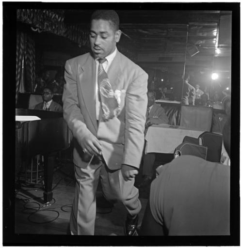 Keywords: (Portrait of Dizzy Gillespie, Downbeat, New York, N.Y., between 1946 and 1948) (LOC) (4976471163).jpg Gottlieb William P 1917- photographer Portrait of Dizzy Gillespie Downbeat New York N Y between 1946 and 1948 1 negative b w ; 2 1/4 x 2 1/4 in Notes Gottlieb Collection Assignment No 523 Reference print available in Music Division Library of Congress Purchase William P Gottlieb Forms part of William P Gottlieb Collection Library of Congress Subjects Gillespie Dizzy 1917- Jazz musicians--1940-1950 Trumpet players--1940-1950 Fifty-second Street New York N Y --1940-1950 Downbeat Format Portrait photographs--1940-1950 Group portraits--1940-1950 Film negatives--1940-1950 Rights Info Mr Gottlieb has dedicated these works to the public domain but rights of privacy and publicity may apply http //lcweb2 loc gov/diglib/ihas/html/gottlieb/gottlieb-copyright html lcweb2 loc gov/diglib/ihas/html/gottlieb/gottlieb-copyrig Repository negative Library of Congress Prints Photographs Division Washington D C 20540 USA http //hdl loc gov/loc pnp/pp print hdl loc gov/loc pnp/pp print reference print Library of Congress Music Division Washington D C 20540 USA http //loc gov/rr/perform/ loc gov/rr/perform/ Part Of William P Gottlieb Collection DLC 99-401005 General information about the Gottlieb Collection is available at http //lcweb2 loc gov/diglib/ihas/html/gottlieb/gottlieb-home html lcweb2 loc gov/diglib/ihas/html/gottlieb/gottlieb-home html Persistent URL http //hdl loc gov/loc music/gottlieb 03251 hdl loc gov/loc music/gottlieb 03251 Call Number LC-GLB23- 0325<br/> PD-Gottlieb https //www flickr com/photos/library_of_congress/4976471163/ Portrait of Dizzy Gillespie Downbeat New York N Y between 1946 and 1948 LOC https //www flickr com/people/8623220 N02 The Library of Congress http //www loc gov/rr/print/195_copr html noknown The Library of Congress Flickr Commons Flickr-no known copyright restrictions The Library of Congress https //flickr com/photos/8623220 N02/4976471163 2015-09-01 22 51 36 pd Photographs by William P Gottlieb |