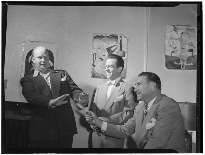 Keywords: (Portrait of Edwin A. Finckel and Boyd Raeburn, Edwin A. Finckel's home, Greenwich Village, New York, N.Y., ca. July 1946) (LOC) (5436423092).jpg Gottlieb William P 1917- photographer Portrait of Edwin A Finckel and Boyd Raeburn Edwin A Finckel's home Greenwich Village New York N Y ca July 1946 1 negative b w ; 3 1/4 x 4 1/4 in Notes Gottlieb Collection Assignment No 509 Purchase William P Gottlieb Forms part of William P Gottlieb Collection Library of Congress Subjects Finckel Edwin A Raeburn Boyd 1913-1966 Jazz musicians--1940-1950 Saxophonists--1940-1950 Format Portrait photographs--1940-1950 Group portraits--1940-1950 Film negatives--1940-1950 Rights Info Mr Gottlieb has dedicated these works to the public domain but rights of privacy and publicity may apply http //lcweb2 loc gov/diglib/ihas/html/gottlieb/gottlieb-copyright html lcweb2 loc gov/diglib/ihas/html/gottlieb/gottlieb-copyrig Repository negative Library of Congress Prints Photographs Division Washington D C 20540 USA http //hdl loc gov/loc pnp/pp print hdl loc gov/loc pnp/pp print contact print Library of Congress Prints Photographs Division Washington D C 20540 USA http //hdl loc gov/loc pnp/pp print hdl loc gov/loc pnp/pp print Part Of William P Gottlieb Collection DLC 99-401005 General information about the Gottlieb Collection is available at http //lcweb2 loc gov/diglib/ihas/html/gottlieb/gottlieb-home html lcweb2 loc gov/diglib/ihas/html/gottlieb/gottlieb-home html Persistent URL http //hdl loc gov/loc music/gottlieb 14791 hdl loc gov/loc music/gottlieb 14791 Call Number LC-GLB13- 1479<br/> PD-Gottlieb https //www flickr com/photos/library_of_congress/5436423092/ Portrait of Edwin A Finckel and Boyd Raeburn Edwin A Finckel's home Greenwich Village New York N Y ca July 1946 LOC https //www flickr com/people/8623220 N02 The Library of Congress http //www loc gov/rr/print/195_copr html noknown The Library of Congress Flickr Commons Flickr-no known copyright restrictions The Library of Congress https //flickr com/photos/8623220 N02/5436423092 2015-09-01 23 56 11 pd Photographs by William P Gottlieb |