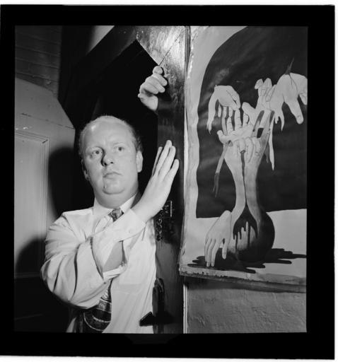 | Keywords: (Portrait of Edwin A. Finckel in his home, Greenwich Village, New York, N.Y., ca. Nov. 1946) (LOC) (4977076272).jpg Gottlieb William P 1917- photographer Portrait of Edwin A Finckel in his home Greenwich Village New York N Y ca Nov 1946 1 negative b w ; 2 1/4 x 2 1/4 in Caption from Down Beat Currently arranging and generally running the music end for the Buddy Rich orchestra Eddie is the ex-Washington arranger who wrote and scored Boyd Meets Stravinsky and other revolutionary items for which Boyd Raeburn and Geoge Handy are generally credited Eddie and his wife Helen altoist Harry Klee's sister live in one of those mad Greenwich Village apartments you read about but seldom see It has red ceilings a stairway in the middle of the studio and a two-tier breakfast room Among the more-or-less permanent furnishings are paintings by Finckel including the impaled hands in the photo and Alec Wilder who has a bed there for resting between wild flights of music writing Notes Gottlieb Collection Assignment No 508 Reference print available in Music Division Library of Congress Purchase William P Gottlieb Forms part of William P Gottlieb Collection Library of Congress In The Record Changer v 5 no 9 Nov 46 1946 p 13 Subjects Finckel Edwin A Jazz musicians--1940-1950 Format Portrait photographs--1940-1950 Film negatives--1940-1950 Rights Info Mr Gottlieb has dedicated these works to the public domain but rights of privacy and publicity may apply http //lcweb2 loc gov/diglib/ihas/html/gottlieb/gottlieb-copyright html lcweb2 loc gov/diglib/ihas/html/gottlieb/gottlieb-copyrig Repository negative Library of Congress Prints Photographs Division Washington D C 20540 USA http //hdl loc gov/loc pnp/pp print hdl loc gov/loc pnp/pp print contact print Library of Congress Prints Photographs Division Washington D C 20540 USA http //hdl loc gov/loc pnp/pp print hdl loc gov/loc pnp/pp print reference print Library of Congress Music Division Washington D C 20540 USA http //loc gov/rr/perform/ loc gov/rr/perform/ Part Of William P Gottlieb Collection DLC 99-401005 General information about the Gottlieb Collection is available at http //lcweb2 loc gov/diglib/ihas/html/gottlieb/gottlieb-home html lcweb2 loc gov/diglib/ihas/html/gottlieb/gottlieb-home html Persistent URL http //hdl loc gov/loc music/gottlieb 02821 hdl loc gov/loc music/gottlieb 02821 Call Number LC-GLB23- 0282<br/> PD-Gottlieb https //www flickr com/photos/library_of_congress/4977076272/ Portrait of Edwin A Finckel in his home Greenwich Village New York N Y ca Nov 1946 LOC https //www flickr com/people/8623220 N02 The Library of Congress http //www loc gov/rr/print/195_copr html noknown The Library of Congress Flickr Commons Flickr-no known copyright restrictions The Library of Congress https //flickr com/photos/8623220 N02/4977076272 2015-09-01 22 55 10 pd Photographs by William P Gottlieb |