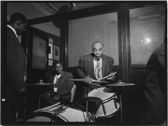 | Keywords: (Portrait of Freddie Moore and Joe Thomas, William P. Gottlieb's office party, Jamaica, Queens, New York, N.Y., ca. 1948) (LOC) (5061913939).jpg Gottlieb William P 1917- photographer Portrait of Freddie Moore and Joe Thomas William P Gottlieb's office party Jamaica Queens New York N Y ca 1948 1 negative b w ; 3 1/4 x 4 1/4 in Notes Gottlieb Collection Assignment No 155 Reference print available in Music Division Library of Congress Purchase William P Gottlieb Forms part of William P Gottlieb Collection Library of Congress Subjects Moore Freddie Thomas Joe Jazz musicians--1940-1950 Drummers Musicians --1940-1950 Format Portrait photographs--1940-1950 Group portraits--1940-1950 Film negatives--1940-1950 Rights Info Mr Gottlieb has dedicated these works to the public domain but rights of privacy and publicity may apply http //lcweb2 loc gov/diglib/ihas/html/gottlieb/gottlieb-copyright html lcweb2 loc gov/diglib/ihas/html/gottlieb/gottlieb-copyrig Repository negative Library of Congress Prints Photographs Division Washington D C 20540 USA http //hdl loc gov/loc pnp/pp print hdl loc gov/loc pnp/pp print reference print Library of Congress Music Division Washington D C 20540 USA http //loc gov/rr/perform/ loc gov/rr/perform/ Part Of William P Gottlieb Collection DLC 99-401005 General information about the Gottlieb Collection is available at http //lcweb2 loc gov/diglib/ihas/html/gottlieb/gottlieb-home html lcweb2 loc gov/diglib/ihas/html/gottlieb/gottlieb-home html Persistent URL http //hdl loc gov/loc music/gottlieb 06381 hdl loc gov/loc music/gottlieb 06381 Call Number LC-GLB23- 0638<br/> PD-Gottlieb https //www flickr com/photos/library_of_congress/5061913939/ Portrait of Freddie Moore and Joe Thomas William P Gottlieb's office party Jamaica Queens New York N Y ca 1948 LOC https //www flickr com/people/8623220 N02 The Library of Congress http //www loc gov/rr/print/195_copr html noknown The Library of Congress Flickr Commons Flickr-no known copyright restrictions The Library of Congress https //flickr com/photos/8623220 N02/5061913939 2015-09-01 22 53 49 pd Photographs by William P Gottlieb |