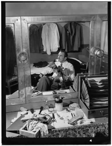 | Keywords: (Portrait of Glen Gray, Paramount Theater, New York, N.Y., ca. July 1946) (LOC) (4843129995).jpg Gottlieb William P 1917- photographer Portrait of Glen Gray Paramount Theater New York N Y ca July 1946 1 negative b w ; 3 1/4 x 4 1/4 in Caption from Down Beat Second in a series of intimate shots of name musicians by Bill Gottlieb as reflected in their dressing room mirrors is Glen Gray leader of Casa Loma posed during his recent engagement at the New York Paramount theater No character is Mr Gray but a substantial pillar of the community as shown by the absence of loud ties and trick suits and the presence of a huge bag of golf clubs a business-like smoking pipe and a neat portable office unfolded at the right Notes Gottlieb Collection Assignment No 386 Reference print available in Music Division Library of Congress Purchase William P Gottlieb Forms part of William P Gottlieb Collection Library of Congress In Through the looking glass Down Beat v 13 no 14 July 1 1946 p 12 Subjects Gray Glen 1906-1963 Jazz musicians--1940-1950 Saxophonists--1940-1950 Paramount Theater Format Portrait photographs--1940-1950 Film negatives--1940-1950 Rights Info Mr Gottlieb has dedicated these works to the public domain but rights of privacy and publicity may apply http //lcweb2 loc gov/diglib/ihas/html/gottlieb/gottlieb-copyright html lcweb2 loc gov/diglib/ihas/html/gottlieb/gottlieb-copyrig Repository negative Library of Congress Prints Photographs Division Washington D C 20540 USA http //hdl loc gov/loc pnp/pp print hdl loc gov/loc pnp/pp print reference print Library of Congress Music Division Washington D C 20540 USA http //loc gov/rr/perform/ loc gov/rr/perform/ Part Of William P Gottlieb Collection DLC 99-401005 General information about the Gottlieb Collection is available at http //lcweb2 loc gov/diglib/ihas/html/gottlieb/gottlieb-home html lcweb2 loc gov/diglib/ihas/html/gottlieb/gottlieb-home html Persistent URL http //hdl loc gov/loc music/gottlieb 03501 hdl loc gov/loc music/gottlieb 03501 Call Number LC-GLB23- 0350<br/> PD-Gottlieb https //www flickr com/photos/library_of_congress/4843129995/ Portrait of Glen Gray Paramount Theater New York N Y ca July 1946 LOC https //www flickr com/people/8623220 N02 The Library of Congress http //www loc gov/rr/print/195_copr html noknown The Library of Congress Flickr Commons Flickr-no known copyright restrictions The Library of Congress https //flickr com/photos/8623220 N02/4843129995 2015-09-02 00 12 02 pd Pipe smoking Photographs by William P Gottlieb |