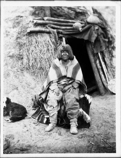 Keywords: Portrait of the Havasupai wife of Navajo deserted Kohat (Kohot) who became Chief of the Havasupai Indians, ca.1898 (CHS-4694).jpg en <br> Portrait of the Havasupai wife of Navajo deserted Kohat Kohot who became Chief of the Havasupai Indians ca 1898 Photographic portrait of the Havasupai wife of Navajo deserted Kohat Kohot who became Chief of the Havasupai Indians ca 1898 She sits on something covered with a blanket She wears a long-sleeved shirt pants moccasins and a blanket wrapped around her shoulders She has thick straight gray hair to her shoulders The entrance of a thatched dome-like dwelling is visible behind her while a dark and light-colored dog lays on the ground at left Call number CHS-4694 Photographer James George Wharton Filename CHS-4694 Coverage date circa 1898 Part of collection California Historical Society Collection 1860-1960 Type images Part of subcollection Title Insurance and Trust and C C Pierce Photography Collection 1860-1960 Repository name USC Libraries Special Collections Format glass plate negatives Microfiche number 1-167- Archival file chs_Volume98/CHS-4694 tiff Repository address Doheny Memorial Library Los Angeles CA 90089-0189 Geographic subject country USA Format aacr2 2 photographs glass photonegative photoprint b w ; 22 x 17 cm Rights Digitally reproduced by the USC Digital Library; From the California Historical Society Collection at the University of Southern California Subject adlf tribal areas Project USC Accession number 4694 Repository email specol usc edu Identifying number unidentified no James-651 Contributing entity California Historical Society Date created circa 1898 Publisher of the digital version University of Southern California Libraries Format aat photographic prints; photographs Legacy record ID chs-m17010; USC-1-1-1-13946 Access conditions Send requests to address or e-mail given Phone 213 821-2366; fax 213 740-2343 Subject file heading Indians -- Navajo Subject lcsh Indians of North America; Navajo Indians; Clothing and dress; Women Subject Navajo Indians circa 1898 date created George Wharton James 1858 1923 http //digitallibrary usc edu/cdm/ref/collection/p15799coll65/id/17025 PD-old-70-1923 Images from USC Digital Library uploaded by Fæ Photographs by George Wharton James California Historical Society Collection 1860-1960 Glass plate negatives Havasupai Historical photographs of Navajo people |