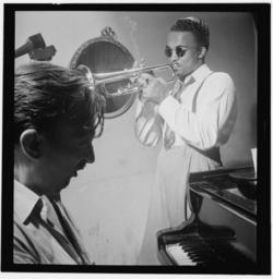 Keywords: (Portrait of Howard McGhee and Brick Fleagle, New York, N.Y., ca. Sept. 1947) (LOC) (5395851394).jpg Gottlieb William P 1917- photographer Portrait of Howard McGhee and Brick Fleagle New York N Y ca Sept 1947 1 negative b w ; 2 1/4 x 2 1/4 in Notes Gottlieb Collection Assignment No 216 Purchase William P Gottlieb Forms part of William P Gottlieb Collection Library of Congress Subjects McGhee Howard 1918- Fleagle Brick Jazz musicians--1940-1950 Trumpet players--1940-1950 Pianists--1940-1950 Format Portrait photographs--1940-1950 Group portraits--1940-1950 Film negatives--1940-1950 Rights Info Mr Gottlieb has dedicated these works to the public domain but rights of privacy and publicity may apply http //lcweb2 loc gov/diglib/ihas/html/gottlieb/gottlieb-copyright html lcweb2 loc gov/diglib/ihas/html/gottlieb/gottlieb-copyrig Repository negative Library of Congress Prints Photographs Division Washington D C 20540 USA http //hdl loc gov/loc pnp/pp print hdl loc gov/loc pnp/pp print Part Of William P Gottlieb Collection DLC 99-401005 General information about the Gottlieb Collection is available at http //lcweb2 loc gov/diglib/ihas/html/gottlieb/gottlieb-home html lcweb2 loc gov/diglib/ihas/html/gottlieb/gottlieb-home html Persistent URL http //hdl loc gov/loc music/gottlieb 13711 hdl loc gov/loc music/gottlieb 13711 Call Number LC-GLB23- 1371<br/> PD-Gottlieb https //www flickr com/photos/library_of_congress/5395851394/ Portrait of Howard McGhee and Brick Fleagle New York N Y ca Sept 1947 LOC https //www flickr com/people/8623220 N02 The Library of Congress http //www loc gov/rr/print/195_copr html noknown The Library of Congress Flickr Commons Flickr-no known copyright restrictions The Library of Congress https //flickr com/photos/8623220 N02/5395851394 2015-09-02 00 15 52 pd Photographs by William P Gottlieb Howard McGhee Brick Fleagle |