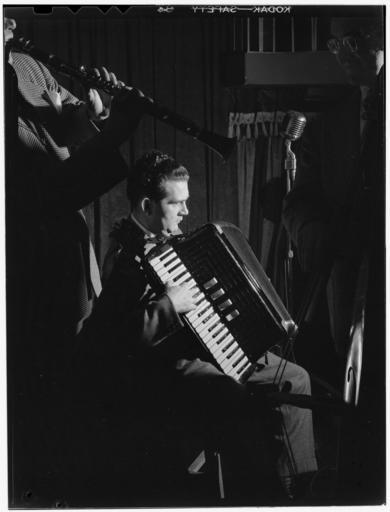 | Keywords: (Portrait of Joe Mooney and Andy Fitzgerald, Eddie Condon's, New York, N.Y., ca. June 1947) (LOC) (5062522498).jpg Gottlieb William P 1917- photographer Portrait of Joe Mooney and Andy Fitzgerald Eddie Condon's New York N Y ca June 1947 1 negative b w ; 3 1/4 x 4 1/4 in Notes Gottlieb Collection Assignment No 425 Reference print available in Music Division Library of Congress Purchase William P Gottlieb Forms part of William P Gottlieb Collection Library of Congress Subjects Mooney Joe 1911-1975 Fitzgerald Andy Joe Mooney Quartet Jazz musicians--1940-1950 Accordionists--1940-1950 Clarinetists--1940-1950 Eddie Condon's Format Portrait photographs--1940-1950 Group portraits--1940-1950 Film negatives--1940-1950 Rights Info Mr Gottlieb has dedicated these works to the public domain but rights of privacy and publicity may apply http //lcweb2 loc gov/diglib/ihas/html/gottlieb/gottlieb-copyright html lcweb2 loc gov/diglib/ihas/html/gottlieb/gottlieb-copyrig Repository negative Library of Congress Prints Photographs Division Washington D C 20540 USA http //hdl loc gov/loc pnp/pp print hdl loc gov/loc pnp/pp print reference print Library of Congress Music Division Washington D C 20540 USA http //loc gov/rr/perform/ loc gov/rr/perform/ Part Of William P Gottlieb Collection DLC 99-401005 General information about the Gottlieb Collection is available at http //lcweb2 loc gov/diglib/ihas/html/gottlieb/gottlieb-home html lcweb2 loc gov/diglib/ihas/html/gottlieb/gottlieb-home html Persistent URL http //hdl loc gov/loc music/gottlieb 06341 hdl loc gov/loc music/gottlieb 06341 Call Number LC-GLB13- 0634<br/> PD-Gottlieb https //www flickr com/photos/library_of_congress/5062522498/ Portrait of Joe Mooney and Andy Fitzgerald Eddie Condon's New York N Y ca June 1947 LOC https //www flickr com/people/8623220 N02 The Library of Congress http //www loc gov/rr/print/195_copr html noknown The Library of Congress Flickr Commons Flickr-no known copyright restrictions The Library of Congress https //flickr com/photos/8623220 N02/5062522498 2015-09-01 23 55 19 pd Photographs by William P Gottlieb Joe Mooney |