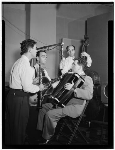 | Keywords: (Portrait of Joe Mooney, Andy Fitzgerald, Gaeton (Gate) Frega, and Jack Hotop, Decca studio, New York, N.Y., ca. Dec. 1946) (LOC) (5395257885).jpg Gottlieb William P 1917- photographer Portrait of Joe Mooney Andy Fitzgerald Gaeton Gate Frega and Jack Hotop Decca studio New York N Y ca Dec 1946 1 negative b w ; 3 1/4 x 4 1/4 in Notes Gottlieb Collection Assignment No 235 Purchase William P Gottlieb Forms part of William P Gottlieb Collection Library of Congress Subjects Mooney Joe 1911-1975 Fitzgerald Andy Frega Gaeton Gate Hotop Jack Joe Mooney Quartet Jazz musicians--1940-1950 Accordionists--1940-1950 Clarinetists--1940-1950 Guitarists--1940-1950 Double bassists--1940-1950 Decca studio Format Portrait photographs--1940-1950 Group portraits--1940-1950 Film negatives--1940-1950 Rights Info Mr Gottlieb has dedicated these works to the public domain but rights of privacy and publicity may apply http //lcweb2 loc gov/diglib/ihas/html/gottlieb/gottlieb-copyright html lcweb2 loc gov/diglib/ihas/html/gottlieb/gottlieb-copyrig Repository negative Library of Congress Prints Photographs Division Washington D C 20540 USA http //hdl loc gov/loc pnp/pp print hdl loc gov/loc pnp/pp print Part Of William P Gottlieb Collection DLC 99-401005 General information about the Gottlieb Collection is available at http //lcweb2 loc gov/diglib/ihas/html/gottlieb/gottlieb-home html lcweb2 loc gov/diglib/ihas/html/gottlieb/gottlieb-home html Persistent URL http //hdl loc gov/loc music/gottlieb 13991 hdl loc gov/loc music/gottlieb 13991 Call Number LC-GLB13- 1399<br/> PD-Gottlieb https //www flickr com/photos/library_of_congress/5395257885/ Portrait of Joe Mooney Andy Fitzgerald Gaeton Gate Frega and Jack Hotop Decca studio New York N Y ca Dec 1946 LOC https //www flickr com/people/8623220 N02 The Library of Congress http //www loc gov/rr/print/195_copr html noknown The Library of Congress Flickr Commons Flickr-no known copyright restrictions The Library of Congress https //flickr com/photos/8623220 N02/5395257885 2015-09-01 23 51 23 pd Photographs by William P Gottlieb Joe Mooney Andy Fitzgerald Gate Frega Jack Hotop |
