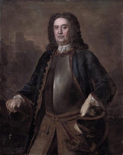 Keywords: Portrait of Major General Richard St George by Stephen Slaughter (London 1697-1765).jpg en Portrait of Major General Richard St George 1670-1755 in a blue coat and breast plate a tricorn in his left hand his right hand on a canon a castle beyond inscribed signed and dated 'Richard S George Esq Major General of His Majestys Forces Aetatis Sua 74 Stepn Slaughter Pinx Dublin 1744 ' lower left oil on canvas unframed 127 x 101 6 cm http //www christies com/Lotfinder/lot_details aspx from searchresults intObjectID 5366643 sid 2f35cd25-1c59-44b9-81aa-fa049df8a2b7 Christie's Stephen Slaughter London 1697-1765 1744 PD-old-100 Stephen Slaughter |