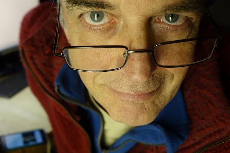 Keywords: portrait man glasses person face male human close head high looking mischievous cheeky senior seniors