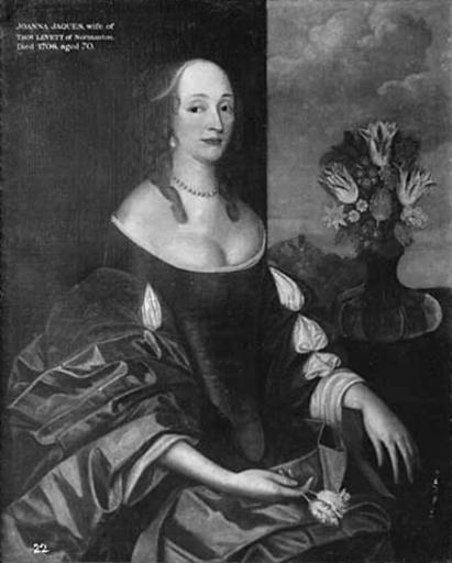 | Keywords: Portrait of Mrs Thomas Levett of Normanton West Riding Yorkshire.jpg Portrait of Joanna daughter of John Jaques of Epworth in Lincolnshire who married Mr Thomas Levett of Normanton West Riding of Yorkshire Joanna Levett died in 1708 at age 70 Portrait formerly in the Collection of Hardwick House home of the Cullum Baronets and heirs to the Levetts The Cullum family portraits were bequeathed to the Borough of St Edmundsbury in 1921 by Gery Milner-Gibson-Cullum last surviving member of the Cullum family before 1708 when subject died oil unknown Bury St Edmunds Past and Present Society Spanton-Jarman Collection of Photographs http //www burypastandpresent org uk/jarman-captions/hardwick/portraits shtml 3037 other versions PD-old-100 DEFAULTSORT 1660 c; Joanna 17th-century unidentified painters 17th-century portrait paintings location missing 17th-century portrait paintings not categorised by year 1630s births 1708 deaths 17th-century oil portraits of sitting women at three-quarter length Black and white reproductions of portrait paintings in color Décolleté in art Female hair fashion in art Females with pearl earrings in art Females with pearl necklaces in art Hardwick House Hawstead People of Yorkshire Portrait paintings of women with flowers Portraits with window at the background Three-quarter view portrait paintings of women facing right Vases in portrait paintings Women facing right and looking at viewer in art Paintings with descriptive text on the artwork Levett family |