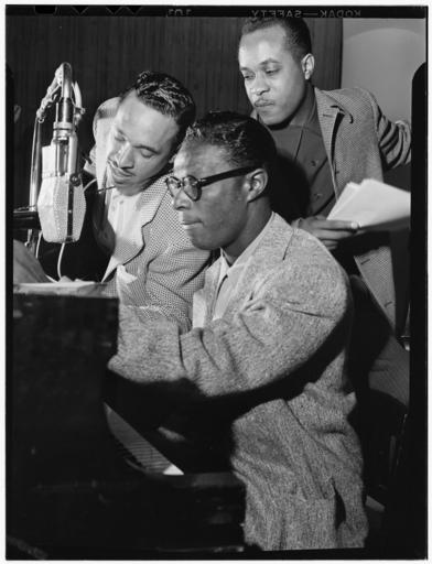 | Keywords: (Portrait of Oscar Moore, Nat King Cole, and Wesley Prince, New York, N.Y., ca. July 1946) (LOC) (4931765097).jpg Gottlieb William P 1917- photographer Portrait of Oscar Moore Nat King Cole and Wesley Prince New York N Y ca July 1946 1 negative b w ; 3 1/4 x 4 1/4 in Notes Gottlieb Collection Assignment No 080 Reference print available in Music Division Library of Congress Purchase William P Gottlieb Forms part of William P Gottlieb Collection Library of Congress Subjects Moore Oscar Cole Nat King 1917-1965 Prince Wesley King Cole Trio Jazz musicians--1940-1950 Pianists--1940-1950 Jazz singers--1940-1950 Guitarists--1940-1950 Double bassists--1940-1950 Format Portrait photographs--1940-1950 Group portraits--1940-1950 Film negatives--1940-1950 Rights Info Mr Gottlieb has dedicated these works to the public domain but rights of privacy and publicity may apply http //lcweb2 loc gov/diglib/ihas/html/gottlieb/gottlieb-copyright html lcweb2 loc gov/diglib/ihas/html/gottlieb/gottlieb-copyrig Repository negative Library of Congress Prints Photographs Division Washington D C 20540 USA http //hdl loc gov/loc pnp/pp print hdl loc gov/loc pnp/pp print reference print Library of Congress Music Division Washington D C 20540 USA http //loc gov/rr/perform/ loc gov/rr/perform/ Part Of William P Gottlieb Collection DLC 99-401005 General information about the Gottlieb Collection is available at http //lcweb2 loc gov/diglib/ihas/html/gottlieb/gottlieb-home html lcweb2 loc gov/diglib/ihas/html/gottlieb/gottlieb-home html Persistent URL http //hdl loc gov/loc music/gottlieb 01611 hdl loc gov/loc music/gottlieb 01611 Call Number LC-GLB13- 0161<br/> PD-Gottlieb https //www flickr com/photos/library_of_congress/4931765097/ Portrait of Oscar Moore Nat King Cole and Wesley Prince New York N Y ca July 1946 LOC https //www flickr com/people/8623220 N02 The Library of Congress http //www loc gov/rr/print/195_copr html noknown The Library of Congress Flickr Commons Flickr-no known copyright restrictions The Library of Congress https //flickr com/photos/8623220 N02/4931765097 2015-09-02 00 16 25 pd Photographs by William P Gottlieb |