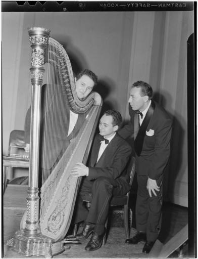 Keywords: (Portrait of Woody Herman, Chubby Jackson, and Abraham Rosen, Carnegie Hall(?), New York, N.Y., ca. Apr. 1946) (LOC) (5019789769).jpg Gottlieb William P 1917- photographer Portrait of Woody Herman Chubby Jackson and Abraham Rosen Carnegie Hall New York N Y ca Apr 1946 1 negative b w ; 3 1/4 x 4 1/4 in Caption from Down Beat Prior to Woody Herman's recent very successful Carnegie Hall concert the band put in several days of serious rehearsing of both their own jump numbers and in particular on Igor Stravinsky's Ebony Concerto Top photo shows Walter Hendl rehearsing the Herd he conducted the Concerto at the concert and during the air premiere while at the bottom Chubby Jackson doesn't seem to dig the addition of the harp which was used in the number Abraham Rosen is the harpist the third figure of course is Woody Musicians in the top shot are Tony Aless piano; Bill Bauer guitar; Chubby Jackson bass; Don Lamond drums; Woody Herman clarinet; and Flip Phillips tenor Notes Gottlieb Collection Assignment No 403 Reference print available in Music Division Library of Congress Purchase William P Gottlieb Forms part of William P Gottlieb Collection Library of Congress In 'Twas not all for naught Down Beat v 13 no 9 Apr 22 1946 p 3 Subjects Herman Woody 1913-1987 Jackson Chubby Rosen Abraham Jazz musicians--1940-1950 Clarinetists--1940-1950 Double bassists--1940-1950 Harpists--1940-1950 Carnegie Hall Format Portrait photographs--1940-1950 Cityscape photographs--1940-1950 Film negatives--1940-1950 Rights Info Mr Gottlieb has dedicated these works to the public domain but rights of privacy and publicity may apply http //lcweb2 loc gov/diglib/ihas/html/gottlieb/gottlieb-copyright html lcweb2 loc gov/diglib/ihas/html/gottlieb/gottlieb-copyrig Repository negative Library of Congress Prints Photographs Division Washington D C 20540 USA http //hdl loc gov/loc pnp/pp print hdl loc gov/loc pnp/pp print reference print Library of Congress Music Division Washington D C 20540 USA http //loc gov/rr/perform/ loc gov/rr/perform/ Part Of William P Gottlieb Collection DLC 99-401005 General information about the Gottlieb Collection is available at http //lcweb2 loc gov/diglib/ihas/html/gottlieb/gottlieb-home html lcweb2 loc gov/diglib/ihas/html/gottlieb/gottlieb-home html Persistent URL http //hdl loc gov/loc music/gottlieb 04081 hdl loc gov/loc music/gottlieb 04081 Call Number LC-GLB13- 0408<br/> PD-Gottlieb https //www flickr com/photos/library_of_congress/5019789769/ Portrait of Woody Herman Chubby Jackson and Abraham Rosen Carnegie Hall New York N Y ca Apr 1946 LOC https //www flickr com/people/8623220 N02 The Library of Congress http //www loc gov/rr/print/195_copr html noknown The Library of Congress Flickr Commons Flickr-no known copyright restrictions The Library of Congress https //flickr com/photos/8623220 N02/5019789769 2015-09-02 00 07 23 pd Photographs by William P Gottlieb Chubby Jackson Abraham Rosen Woody Herman (Portrait of Woody Herman, Chubby Jackson, and Abraham Rosen, Carnegie Hall(?), New York, N.Y., ca. Apr. 1946) (LOC) (5019789769).jpg Gottlieb William P 1917- photographer Portrait of Woody Herman Chubby Jackson and Abraham Rosen Carnegie Hall New York N Y ca Apr 1946 1 negative b w ; 3 1/4 x 4 1/4 in Caption from Down Beat Prior to Woody Herman's recent very successful Carnegie Hall concert the band put in several days of serious rehearsing of both their own jump numbers and in particular on Igor Stravinsky's Ebony Concerto Top photo shows Walter Hendl rehearsing the Herd he conducted the Concerto at the concert and during the air premiere while at the bottom Chubby Jackson doesn't seem to dig the addition of the harp which was used in the number Abraham Rosen is the harpist the third figure of course is Woody Musicians in the top shot are Tony Aless piano; Bill Bauer guitar; Chubby Jackson bass; Don Lamond drums; Woody Herman clarinet; and Flip Phillips tenor Notes Gottlieb Collection Assignment No 403 Reference print available in Music Division Library of Congress Purchase William P Gottlieb Forms part of William P Gottlieb Collection Library of Congress In 'Twas not all for naught Down Beat v 13 no 9 Apr 22 1946 p 3 Subjects Herman Woody 1913-1987 Jackson Chubby Rosen Abraham Jazz musicians--1940-1950 Clarinetists--1940-1950 Double bassists--1940-1950 Harpists--1940-1950 Carnegie Hall Format Portrait photographs--1940-1950 Cityscape photographs--1940-1950 Film negatives--1940-1950 Rights Info Mr Gottlieb has dedicated these works to the public domain but rights of privacy and publicity may apply http //lcweb2 loc gov/diglib/ihas/html/gottlieb/gottlieb-copyright html lcweb2 loc gov/diglib/ihas/html/gottlieb/gottlieb-copyrig Repository negative Library of Congress Prints Photographs Division Washington D C 20540 USA http //hdl loc gov/loc pnp/pp print hdl loc gov/loc pnp/pp print reference print Library of Congress Music Division Washington D C 20540 USA http //loc gov/rr/perform/ loc gov/rr/perform/ Part Of William P Gottlieb Collection DLC 99-401005 General information about the Gottlieb Collection is available at http //lcweb2 loc gov/diglib/ihas/html/gottlieb/gottlieb-home html lcweb2 loc gov/diglib/ihas/html/gottlieb/gottlieb-home html Persistent URL http //hdl loc gov/loc music/gottlieb 04081 hdl loc gov/loc music/gottlieb 04081 Call Number LC-GLB13- 0408<br/> PD-Gottlieb https //www flickr com/photos/library_of_congress/5019789769/ Portrait of Woody Herman Chubby Jackson and Abraham Rosen Carnegie Hall New York N Y ca Apr 1946 LOC https //www flickr com/people/8623220 N02 The Library of Congress http //www loc gov/rr/print/195_copr html noknown The Library of Congress Flickr Commons Flickr-no known copyright restrictions The Library of Congress https //flickr com/photos/8623220 N02/5019789769 2015-09-02 00 07 23 pd Photographs by William P Gottlieb Chubby Jackson Abraham Rosen Woody Herman |